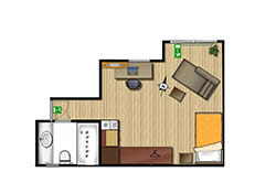 - * Wardrobe with hangers, storage unit, dressing mirror, blinds curtain